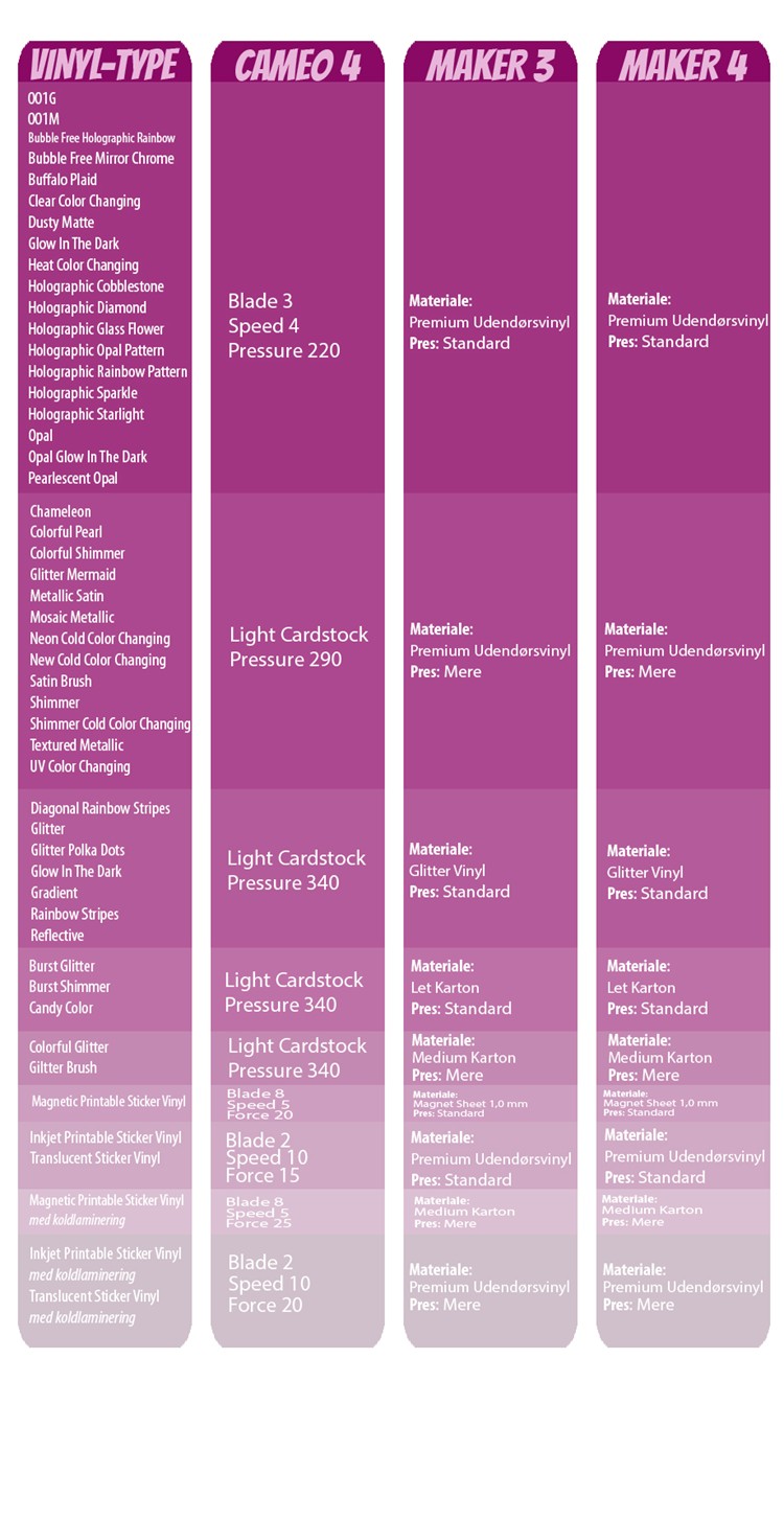 Prøv dig frem på et lille stykke vinyl først, for at finde dne indstilling som passer lige til dit project.